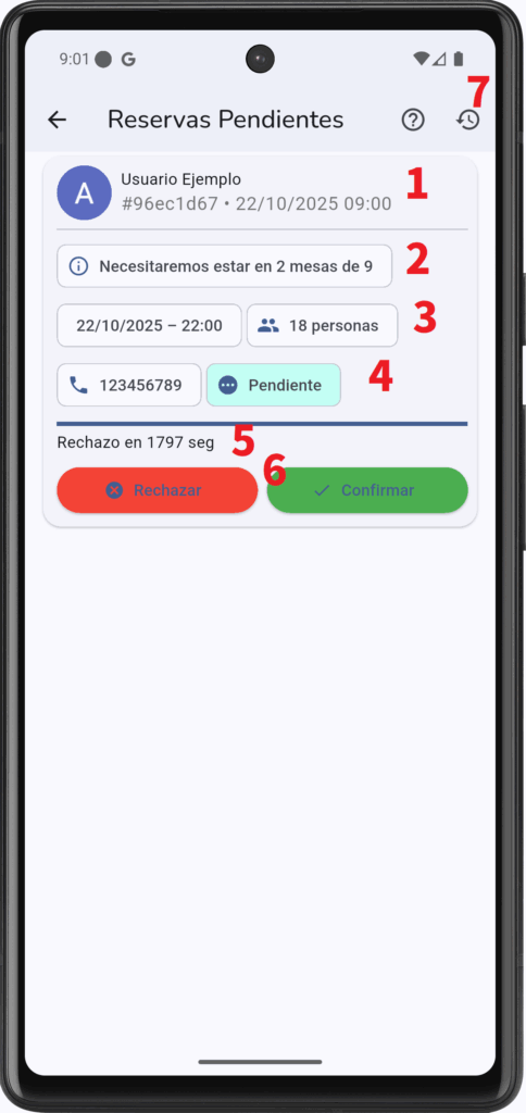 5. Tiempo restante antes de que la reserva sea rechaza automáticamente al no haber sido gestionada a tiempo.
